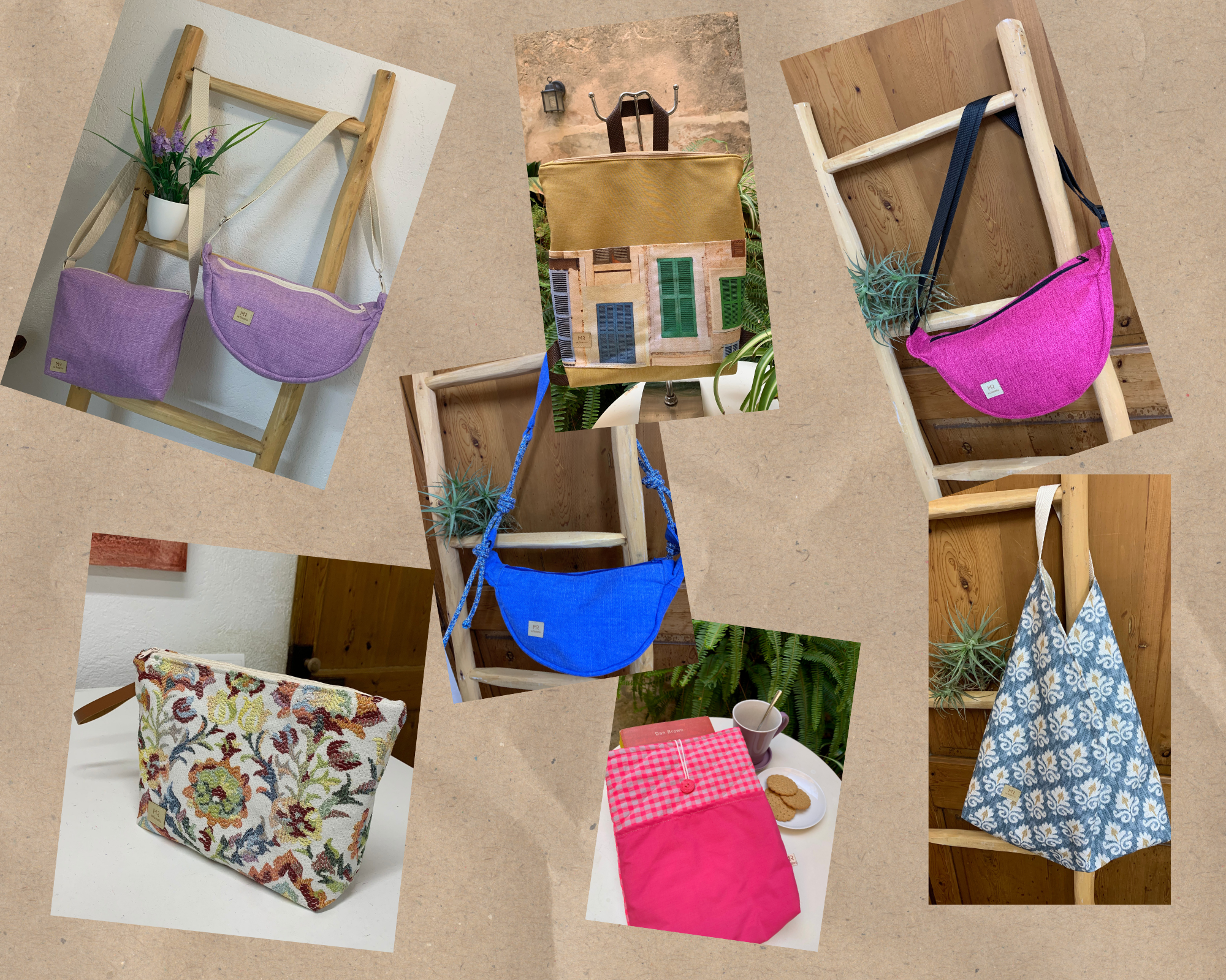 Trabajamos con telas típicas de Mallorca, seleccionadas cuidadosamente para dar vida a mochilas, tote bags, bolsos de mano y otros complementos llenos de carácter.
